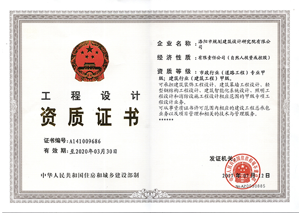 7月12日,住建部發(fā)布第1610號(hào)公告《住房城鄉(xiāng)建設(shè)部關(guān)于核準(zhǔn)2017年度第七批建設(shè)工程企業(yè)資質(zhì)資格名單的公告》,公司市政工程設(shè)計(jì)資質(zhì)順利通過審查成功晉升為甲級(jí)資質(zhì),從此創(chuàng)造了公司空前的專業(yè)甲級(jí)資質(zhì)數(shù)量之最,擁有了城鄉(xiāng)規(guī)劃編制、建筑工程設(shè)計(jì)、工程勘察、工程測(cè)繪、工程咨詢、工程監(jiān)理、市政工程設(shè)計(jì)七項(xiàng)甲級(jí)資質(zhì),是全省乃至全國(guó)同類勘察設(shè)計(jì)企業(yè)中擁有工程設(shè)計(jì)類資質(zhì)數(shù)量多、類別全、級(jí)別高的工程設(shè)計(jì)單位之一。
